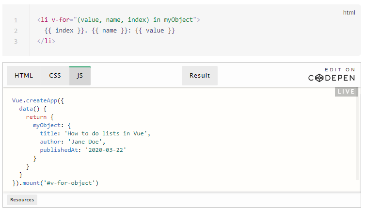 v-for="(value, name, index) in MyObject"