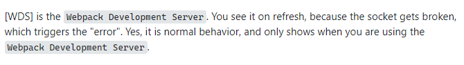 I'm currently getting started on ReactJs. However, I've come across the following error in the console which doers not show in the terminal: [WDS] Disconnected!sock.onclose @ client?64c0:70Event...