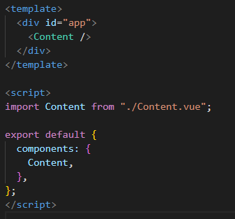 [ Header.vue, Content.vue ] 가 있다면, Header.vue 내에 Content.vue를 import하여 사용하는 것이다.