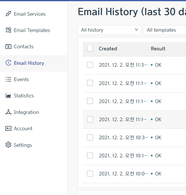 EmailJS - DashBoard - Email History 에서도 확인하실 수 있습니다.