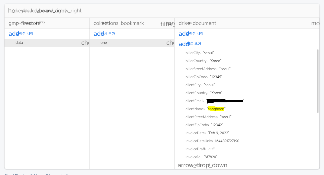 해당 내용을 실행 후, 파이어베이스 프로젝트로 이동하여 내용을 보면, 아래와 같이 데이터가 들어가있음을 확인이 가능하다.