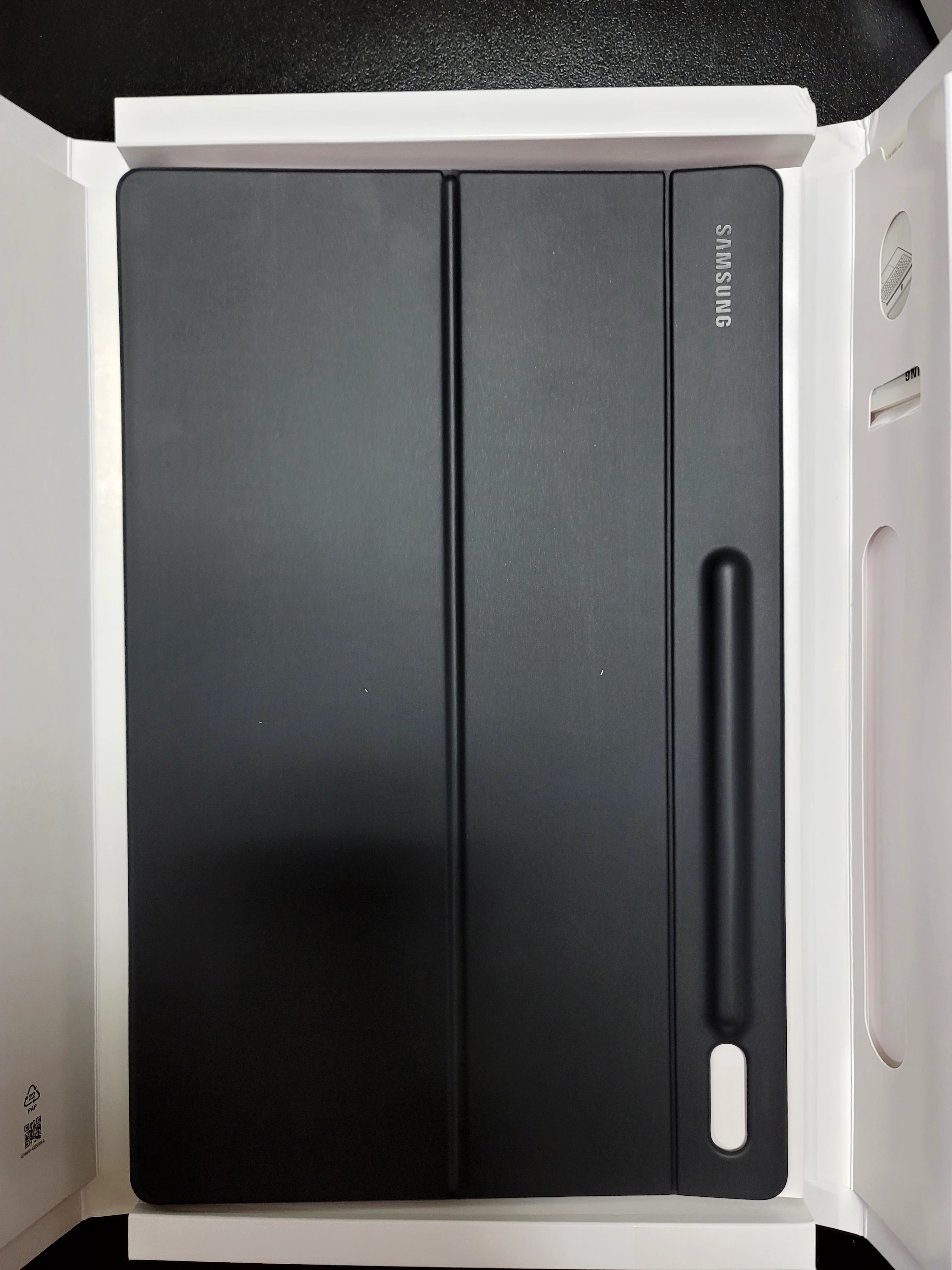 뒷면은 은은한 광택이 도는 고급스러운 블랙이었습니다. 손으로 쓸었을때 사삭 소리가 나면서 시원한 촉감에 느낌이 좋아요.