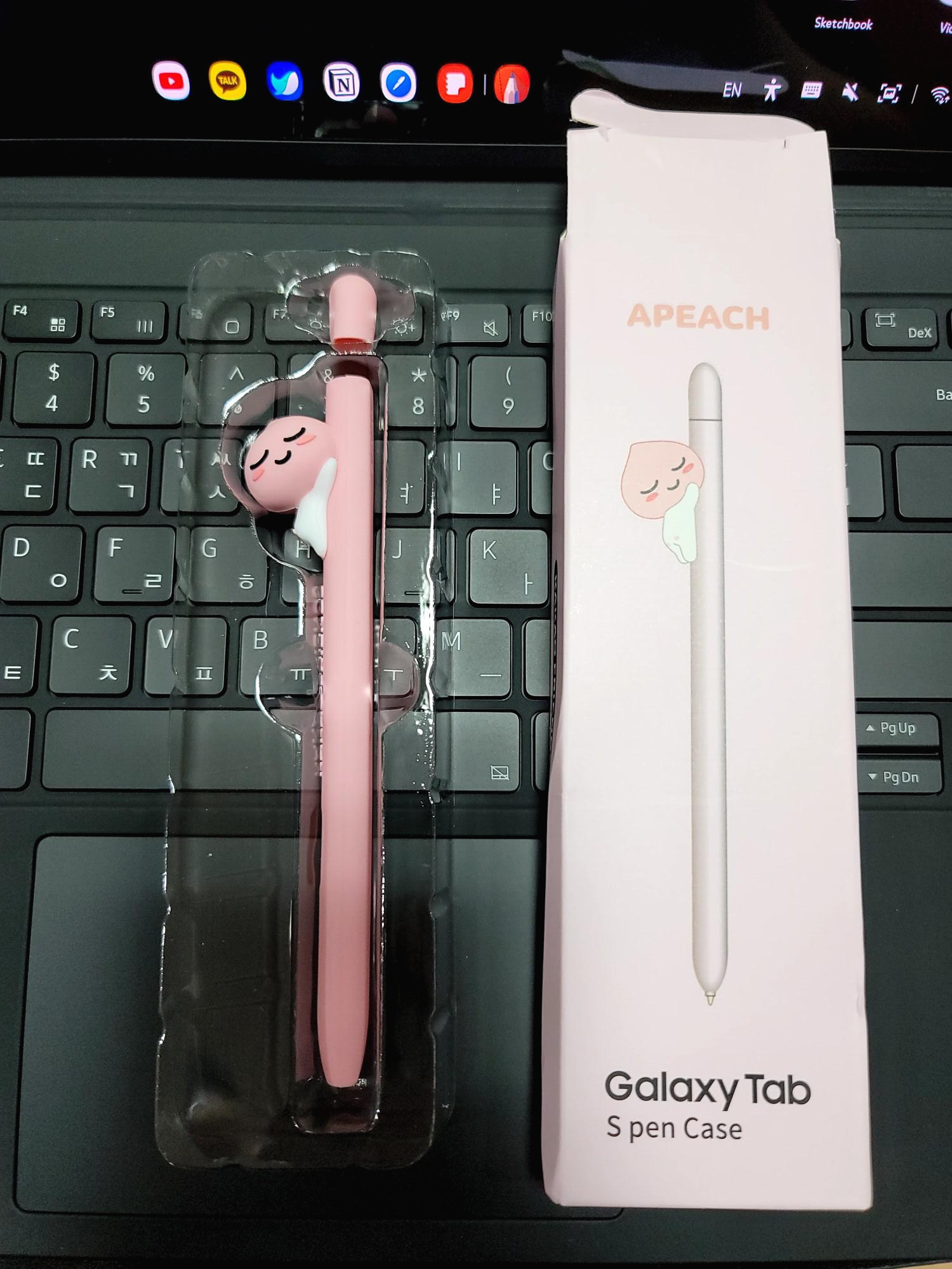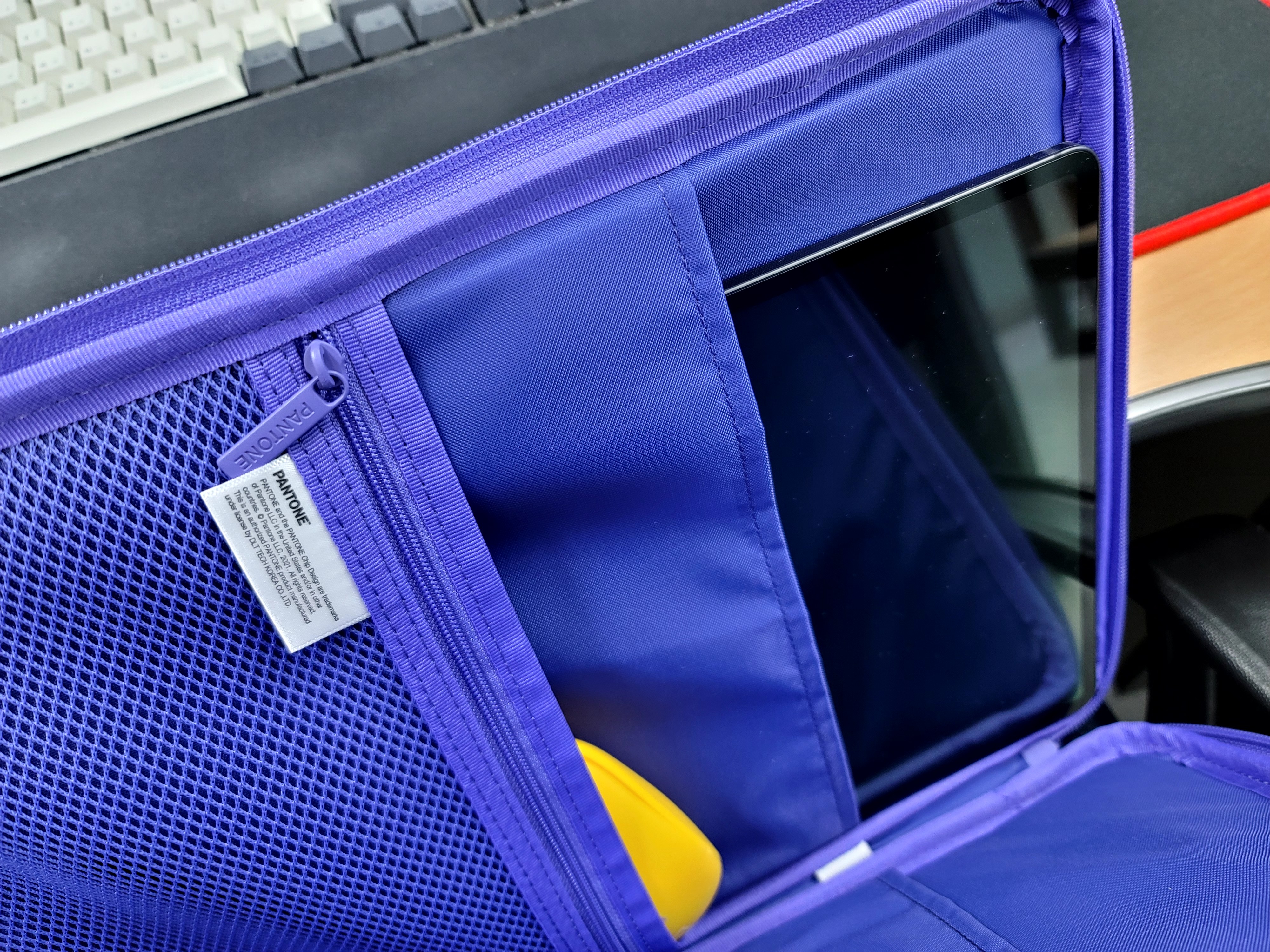 키보드가 오지 않았던 시점이라 저렇게 펜을 떼어서 지퍼공간 내부에 넣어놓고, 탭 보관하고, 마우스 넣어서 주섬주섬 보따리 상인처럼 들고 다녔습니다.