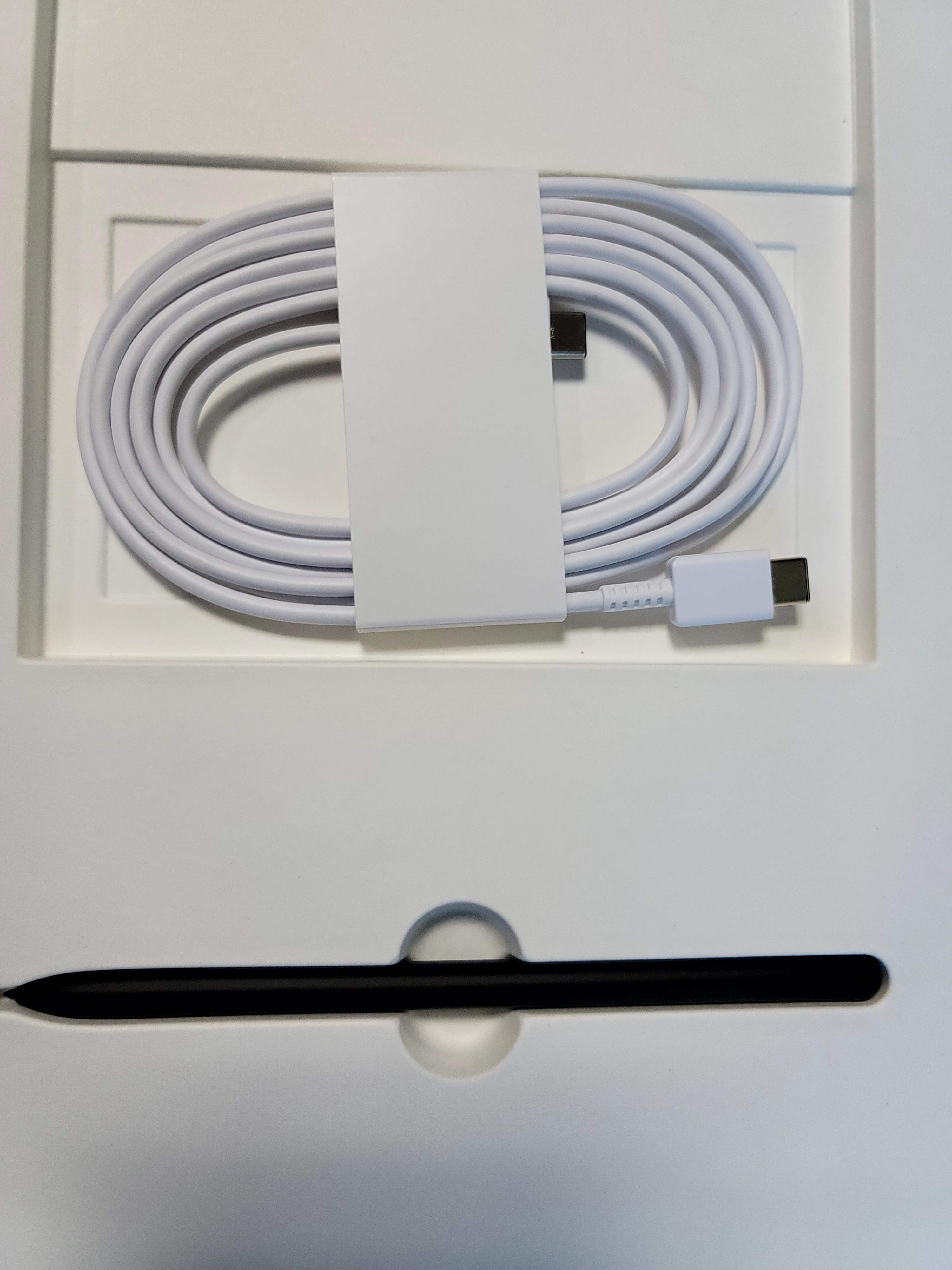 구성품은 펜과 C to C 케이블... 네.. 이번에는 삼성에서 어댑터를 안넣어줬어요...