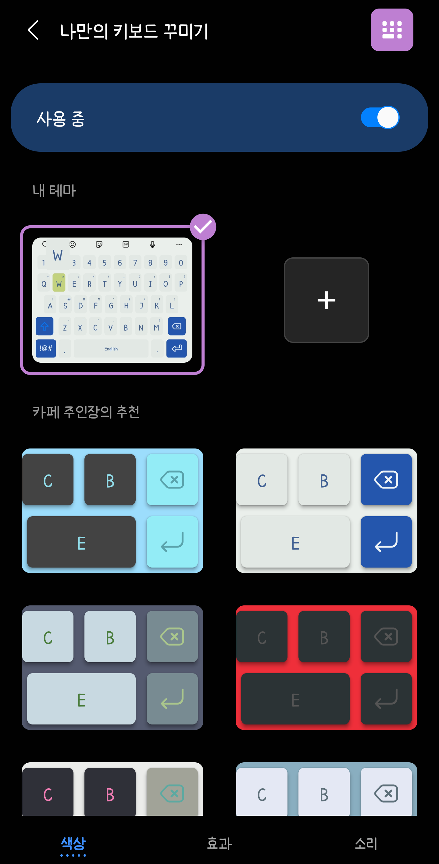 4. 이곳에서 나만의 키보드를 적용해주시면 됩니다! 아주 간단하죠?