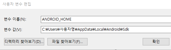 변수이름 : ANDROID_HOME