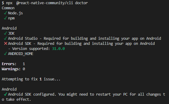 React native 에서 환경설정 중 진단할 수 있는 react-native tool 👍