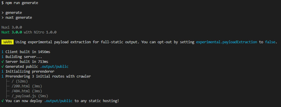 (추가 : .output/public 을 정적배포가 가능하다고 출력되었습니다.)
