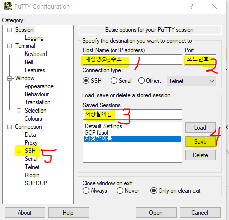 저장해주세요. (putty 에서 파일 불러오기 할 것이기 때문에 삭제 하시면 안됩니다)