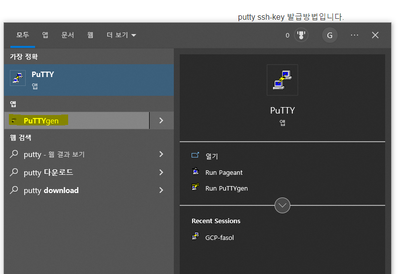 구글 클라우드 플랫폼에서 SSH키 생성 후 PuTTY 접속하기