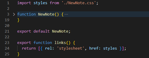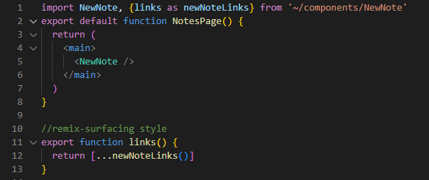 ✔ 자식컴포넌트-NewNote 에서 export 한 links 를 부모에서 별칭으로 import 하여 links 함수 내에 넣습니다.