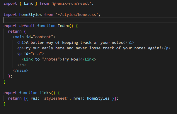 links 라는 함수명을 remix <Links> 에서 감지하여 하위 요소로 끌고가줍니다.