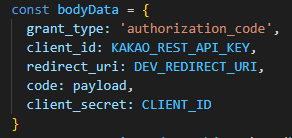 + 어떤 블로그를 보면서 진행하고있었는데, 거기서는 code만 보내는 걸로 해서 계속 나오는 에러였습니다.