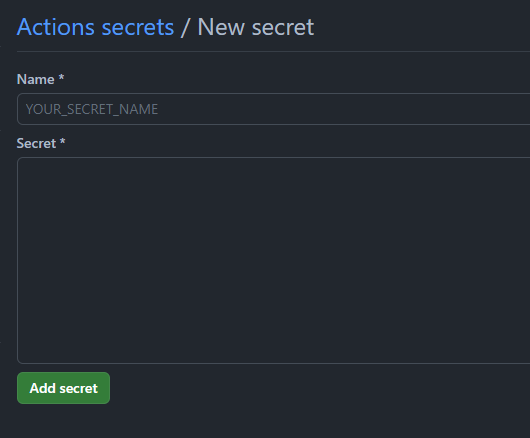 New repository secret 을 눌러 새로운 키를 생성한다고 말해줍니다.