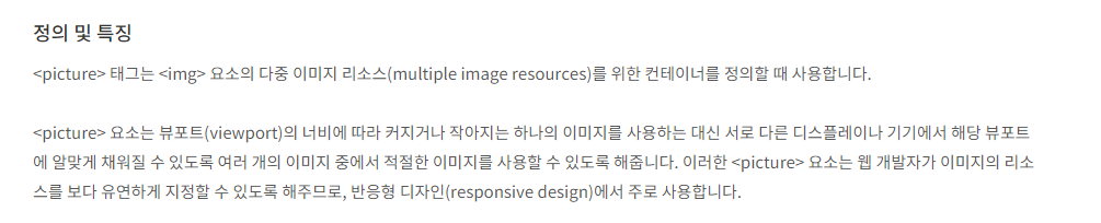 html 관련 img, pictrue tag 에 대해 간략 서술하기