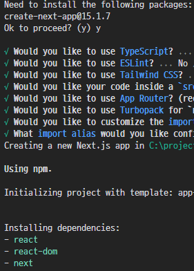 아래 명령어를 통하여 Next.js 프로젝트를 생성하려고하는데,