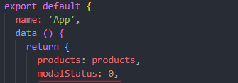 script 내 data 내에 modalStatus 변수의 기본값을 0으로 설정하여 처음 렌더링 되었을 때, 보이지 않게 설정하였습니다.