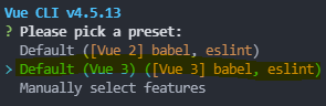 이렇게 나열됩니다. 이중에 Vue3, babel, eslint를 선택해주세요.