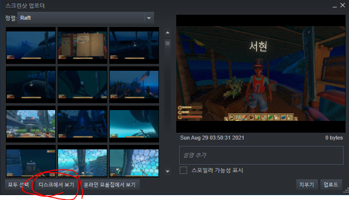 3. 스크린샷 업로더 - [ 디스크에서 보기 ]