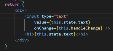 text = '' 로 놓고, 값이 변할때마다 handleChange() 함수를 호출하고, 그 값을 h1태그에 보여주는 형식입니다.