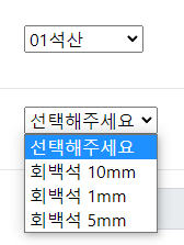 리스트 요소 중 하나를 선택하면 해당되는 2번째 select-box에 값을 출력해줍니다. [ 데이터베이스 이용 ]