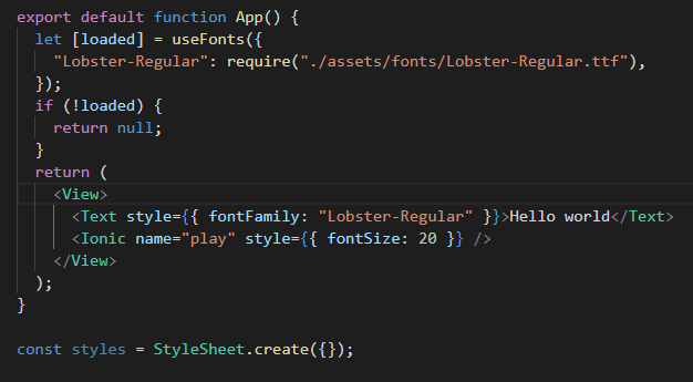 expo-font를 설치해주고, App.js 에서 코딩해주었다.