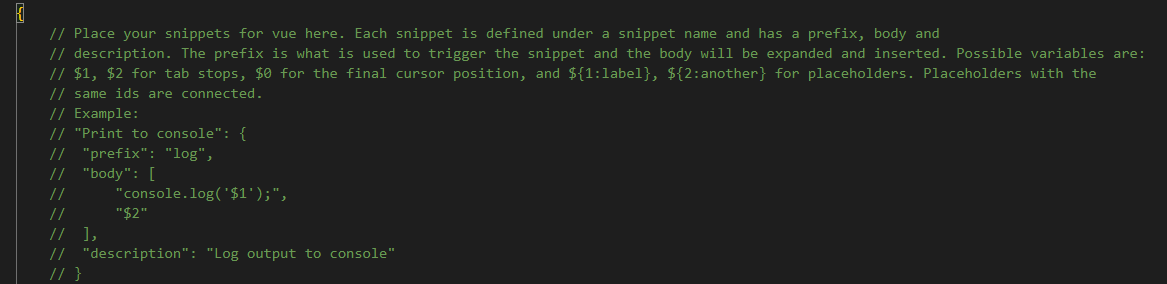 prefix 부분에 명령어와 같이 vue-start를 입력하면 해당 body 포멧을 불러올 수 있게 됩니다.