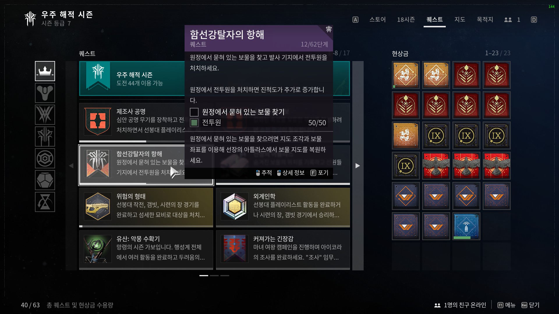 ★ [함선당탈자의 항해 (12단계)] 퀘스트에서 "원정에서 묻혀 있는 보물을 찾고 발사기지에서..." 라는 퀘스트가 있습니다.