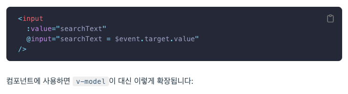 2023.06.12 - [FrontEnd/Vue.js] - [ Vue.js ] Component 에 v-model 값 적용하기 1(이전포스팅)